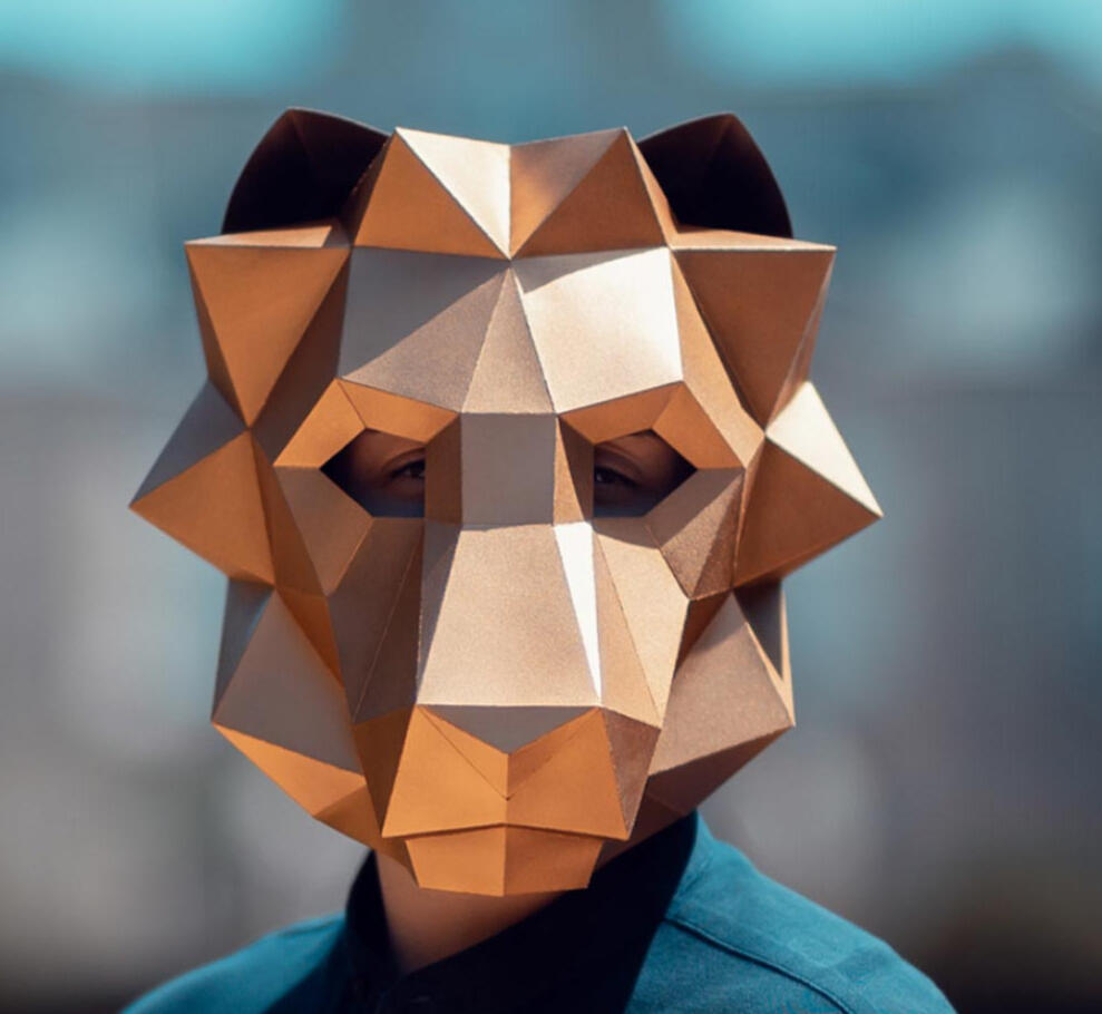 Low-poly masks that are eye-catching & highly convenient costumes.